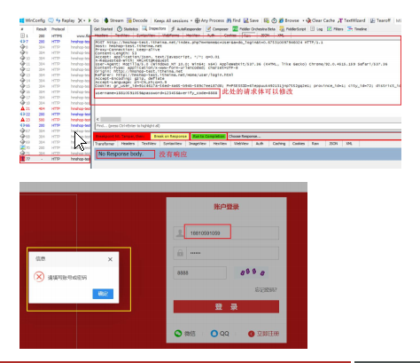 可以使用抓包工具设置断点,验证tpshop登录账号为空时的结果(有时候前端判定了不能输入为空的时候,可以用此方法测试为空时的结果)