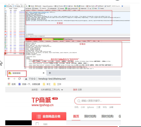 可以使用抓包工具设置断点,将tpshop商城首页title改为“Testing”,修改响应结果。