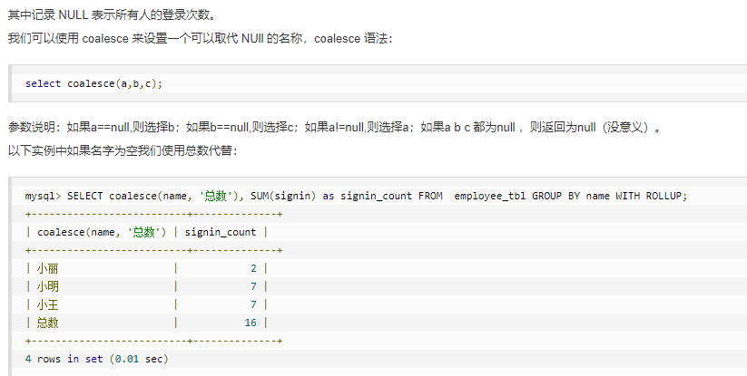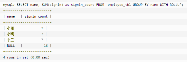 可以实现在分组统计数据基础上再进行相同的统计(SUM,AVG,COUNT…)。