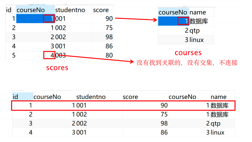 inner join(join): 连接两个表时,取的是两个表中都存在的数据。(取交集)