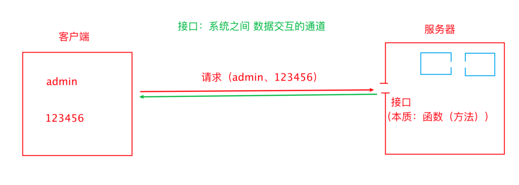 接⼝:系统之间(外部系统与内部系统,内部系统与内部系统)数据交通的通道。