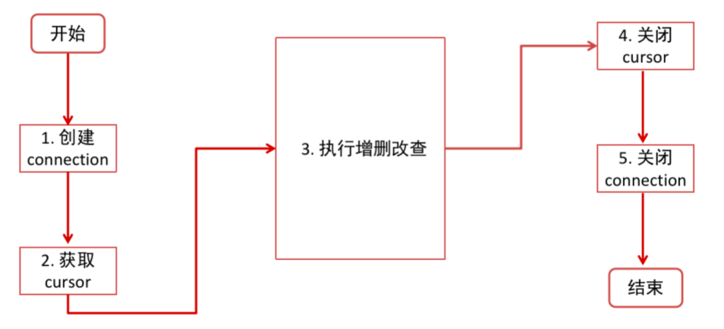 4. 执行 SQL。 cursor.execute( ”sql语句“ )