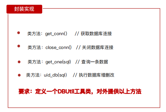 - 将常用的数据库操作,封装到一个方法。 后续再操作数据库时,通过调用该方法来实现。