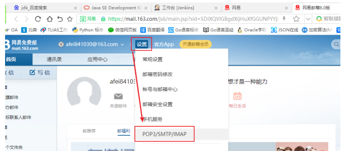 1. 登录 163邮箱,点击 “设置” ——> “POP3/SMTP/IMAP”