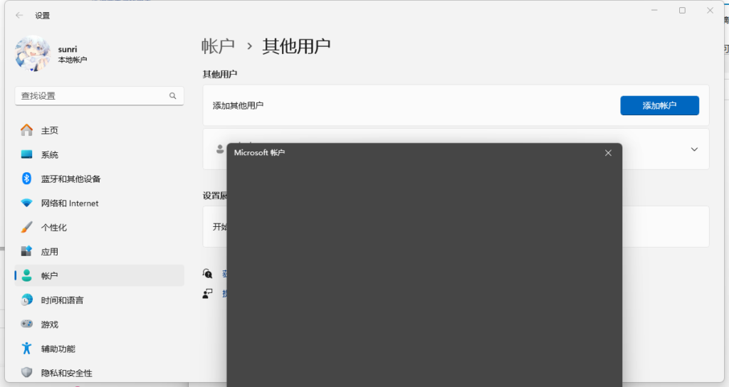 在控制面板-用户账户-用户账户-管理账户中,点击 在电脑设置中添加新用户,再点击添加账户,弹出Microsoft账户窗口,但是闪退,无法正常打开。
