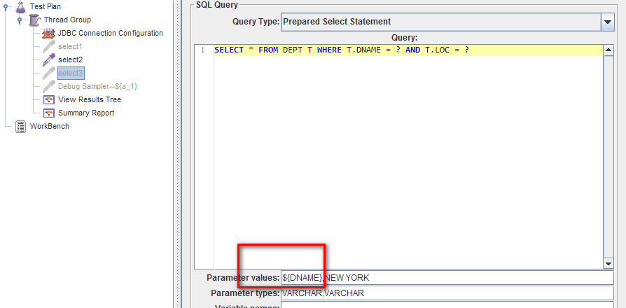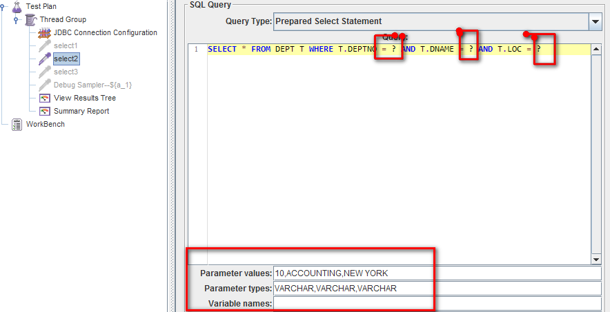 方法(二): 在sql query中使用“?”作为占位符,并传递参数值和参数类型,如下图: