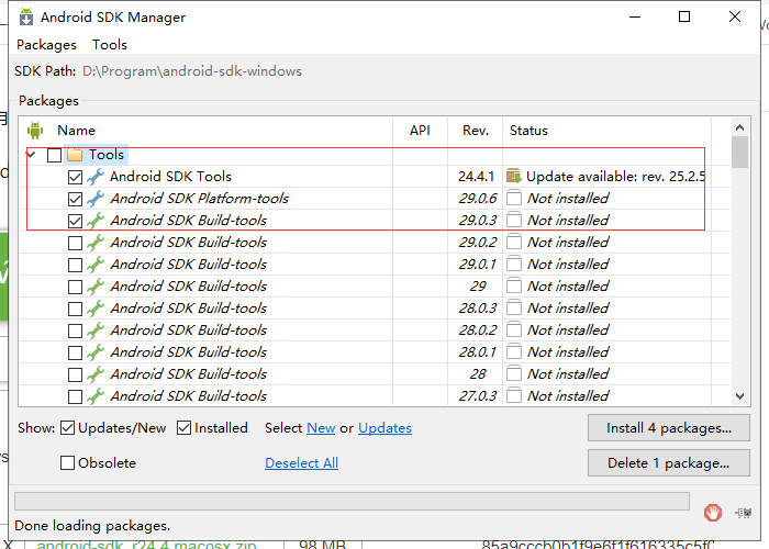 解压包到指定目录,点击目录中的SDK Manager.exe进行升级和安装操作