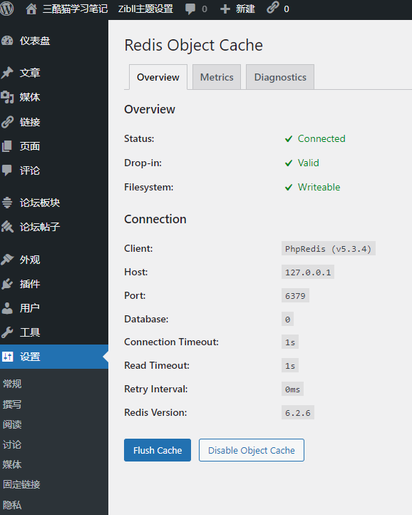 Enable Object Cache 如下图![图片[4] - 给网站提提速&使用Redis和opcache为网站加速教程 - 正则时光](https://www.regular.cc/wp-content/uploads/2023/10/image-56-1024x1008.png)