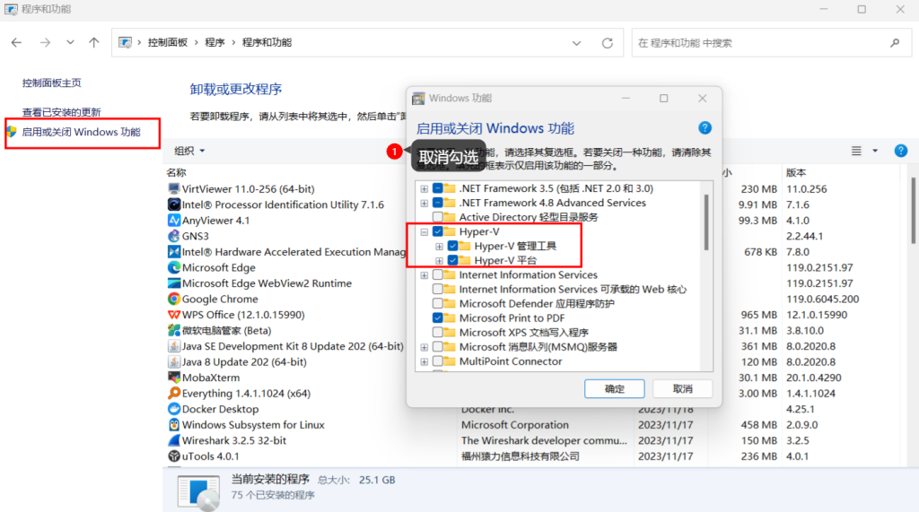 禁用 Hyper-V 可能会导致一些依赖于 Hyper-V 的功能(如 Windows 容器)无法正常工作。