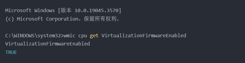 wmic cpu get VirtualizationFirmwareEnabled #cmd管理员