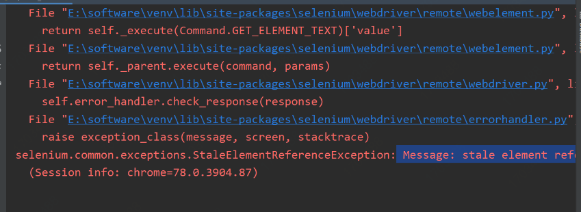Message: stale element reference: element is not attached to the page document