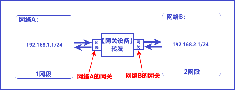 一个网络通往另一个网络时,中间会有一个转发设备,这个设备就是【网关设备】,这个设备的IP地址就可以作为网关使用。所以网关实质上是一个网络通向其他网络的【IP地址】。