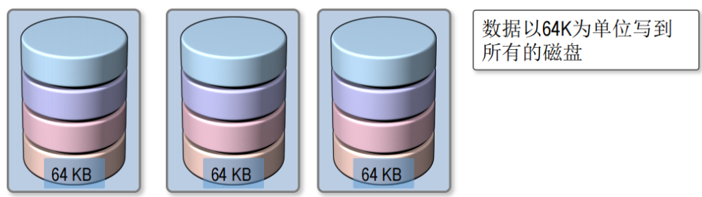 由两块或两块以上硬盘组成,但是每块硬盘所贡献的空间大小必须相同,读写效率高。