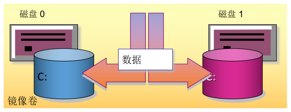 由两块磁盘组成,每块磁盘提供相同大小的空间,支持容错,即一块硬盘损坏后数据不会丢失,磁盘空间利用率50%。
