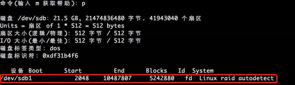 3.加一个新的热备分区进 RAID 设备,这个新分区可以从/dev/sdb 磁盘上再划分一个5G 大小的/dev/sdb2 分区。把/dev/sdb2 加入到 RAID 设备/dev/md0 中作为新热备盘。