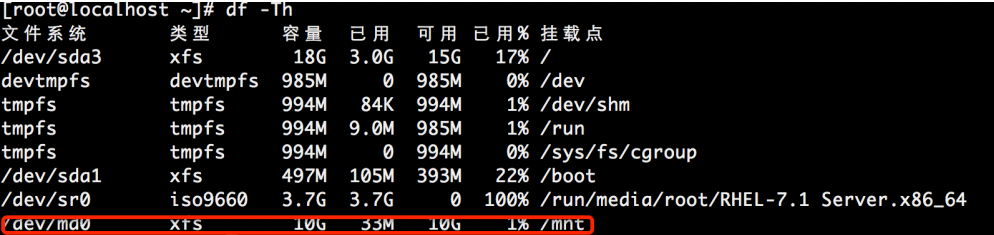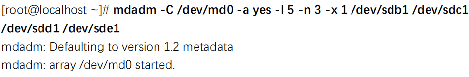 2.创建级别 5 的 RAID 设备/dev/md0。