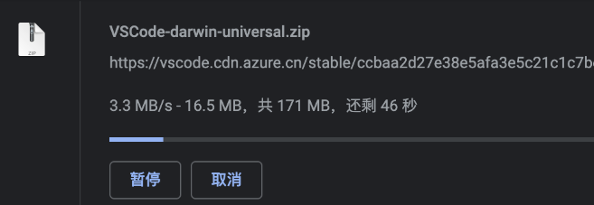 2.复制出以上下载的链接地址,把以上截图红框标注的部分换成vscode.cdn.azure.cn ,这样会变成采用国内的镜像,再次访问新地址来下载vscode,情况如下: