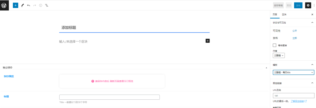 3.接下来新建页面选择 (正则时光 – 每日60S) 模板保存即可,剩下的就不说了自己琢磨!
