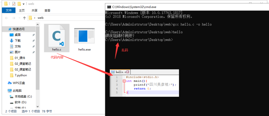 执行gcc编译代码,显示的打印信息乱码,如下图