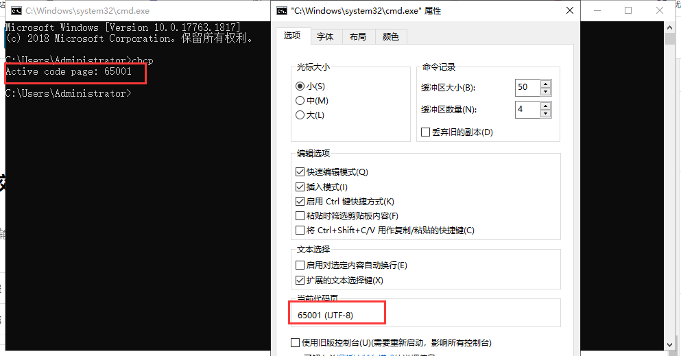我们要做的就是修改代码页为65001(UTF-8代码页)