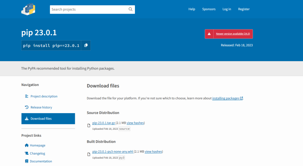 sudo tar -xzvf pip-23.0.1.tar.gz