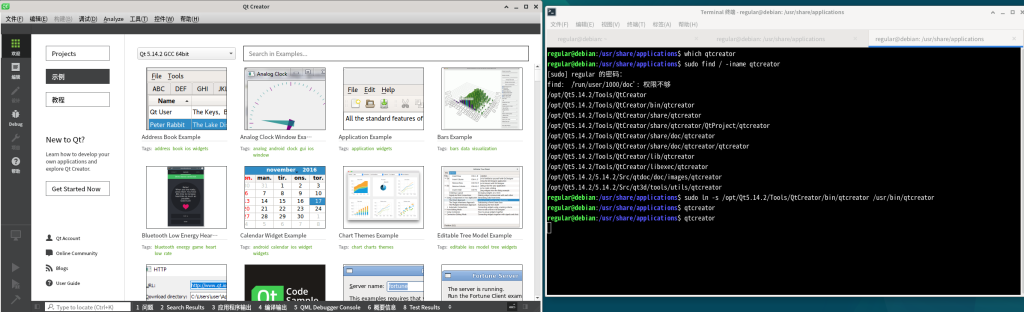 使用下面语句将qtcreator程序连接到/usr/bin目录下。然后就可以在终端使用qtcreator来调用了。