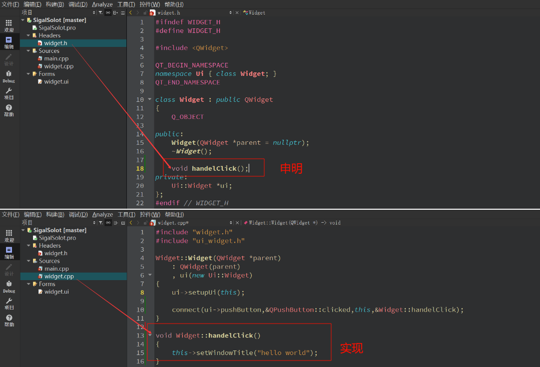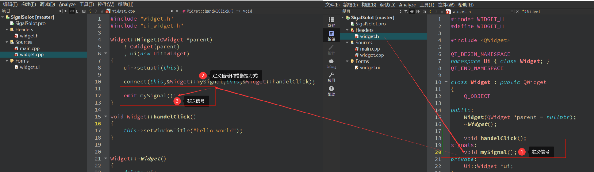 注意:只有继续自QObject的类及子类,才有信号与槽的功能。普通类无法使用信号与槽。