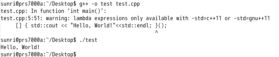 [] { std::cout << "Hello, World!<<std::endl"; }();