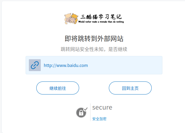 <div class="sub-title">跳转网站安全性未知,是否继续</div>