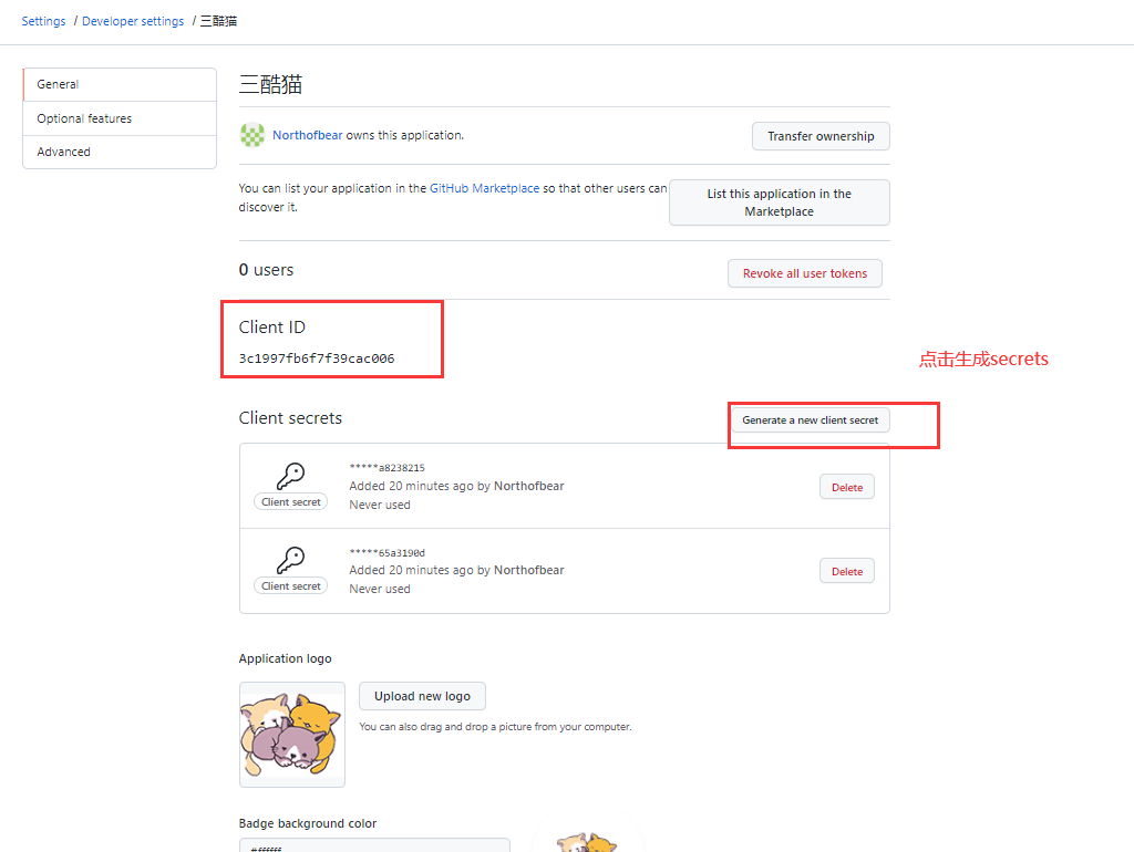 4.然后就申请好了。我们可以点击下图按钮生成一个secrets