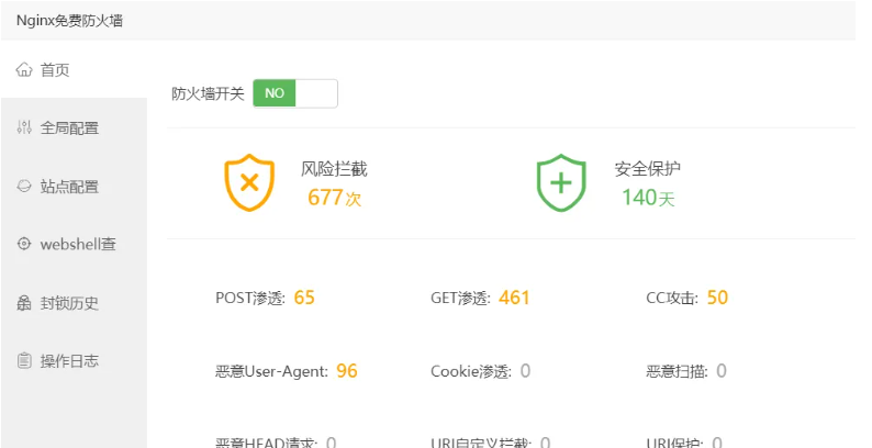 1、进入BT宝塔面板后台,点击“Nginx免费防火墙”