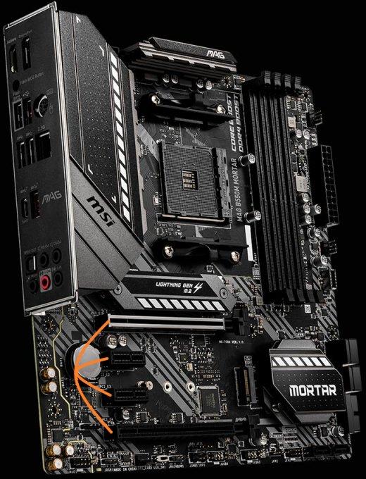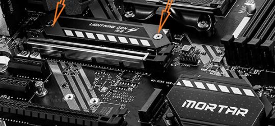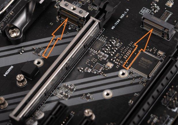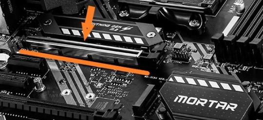 在主板pcie插槽的上方你能看到一个散热装甲片: